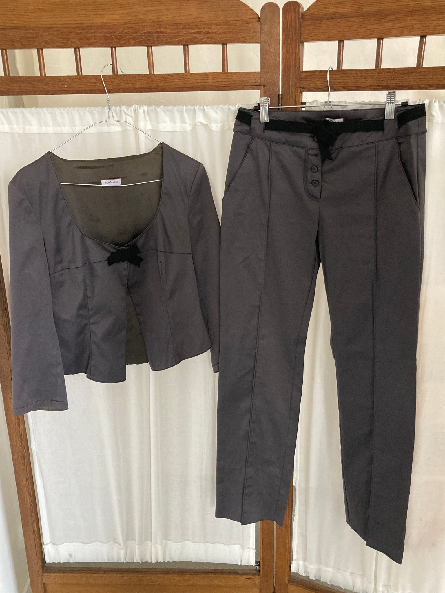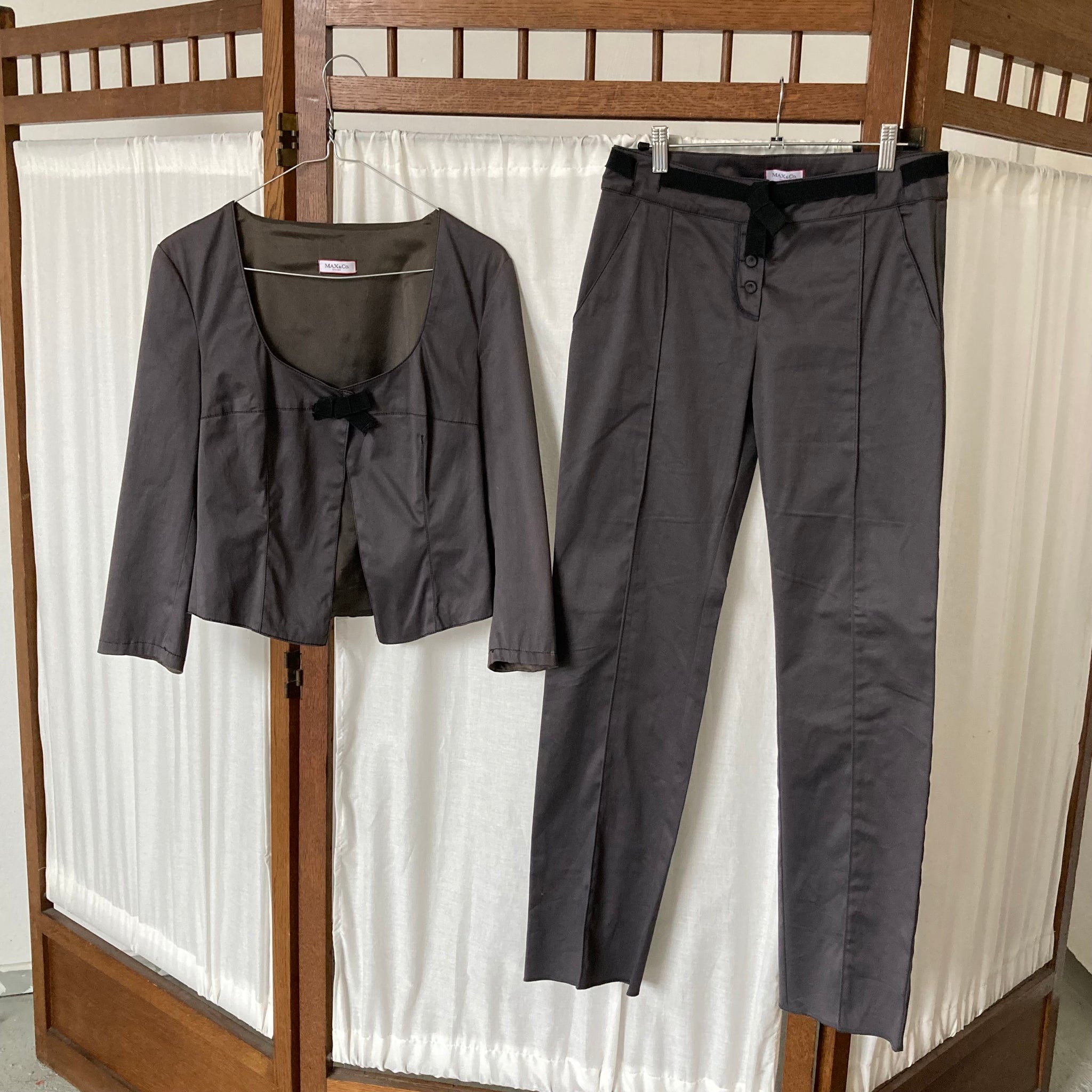 Max & Co fitted suit in dark grey with black details.